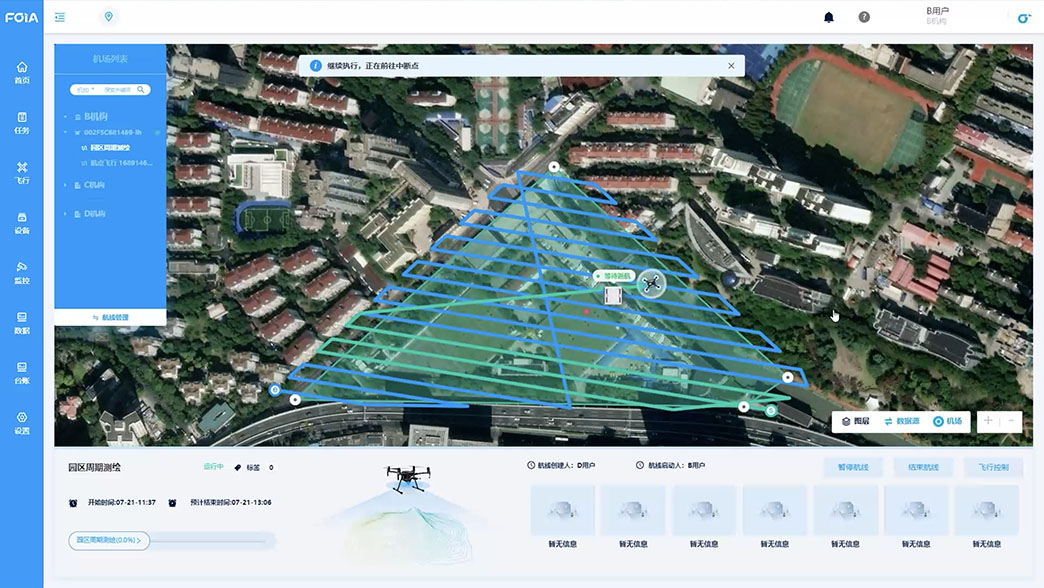 自動(dòng)飛行模塊能合理進(jìn)行任務(wù)及路線規(guī)劃,通過多種智能飛行模式和安全策略,保障無人機(jī)安全高效飛行,同時(shí)結(jié)合AI識(shí)別算法與策略,能有效地解決業(yè)務(wù)問題。
