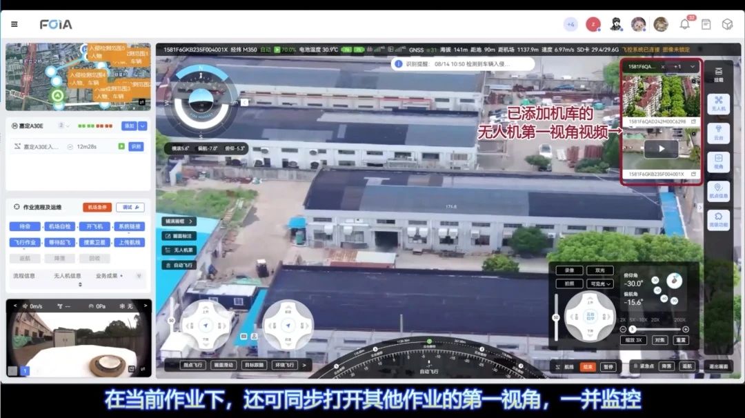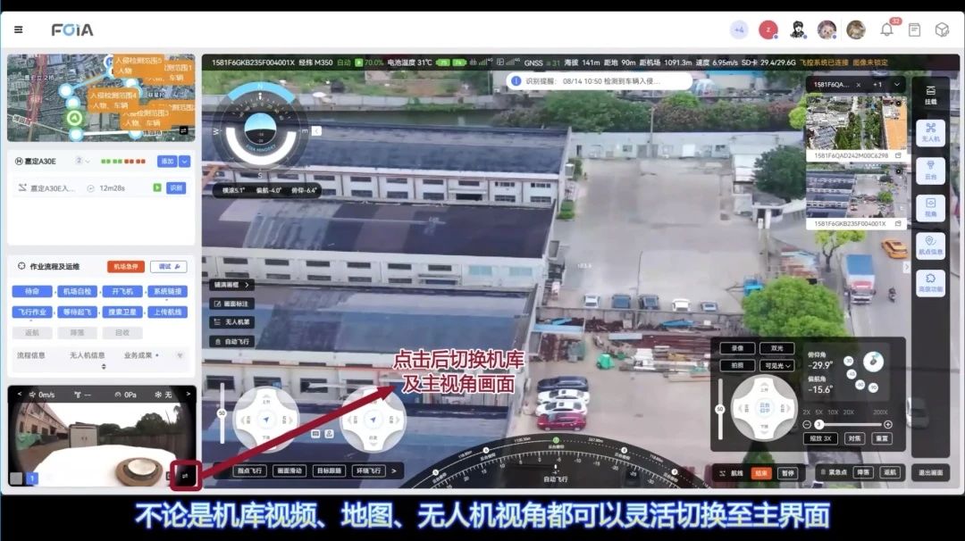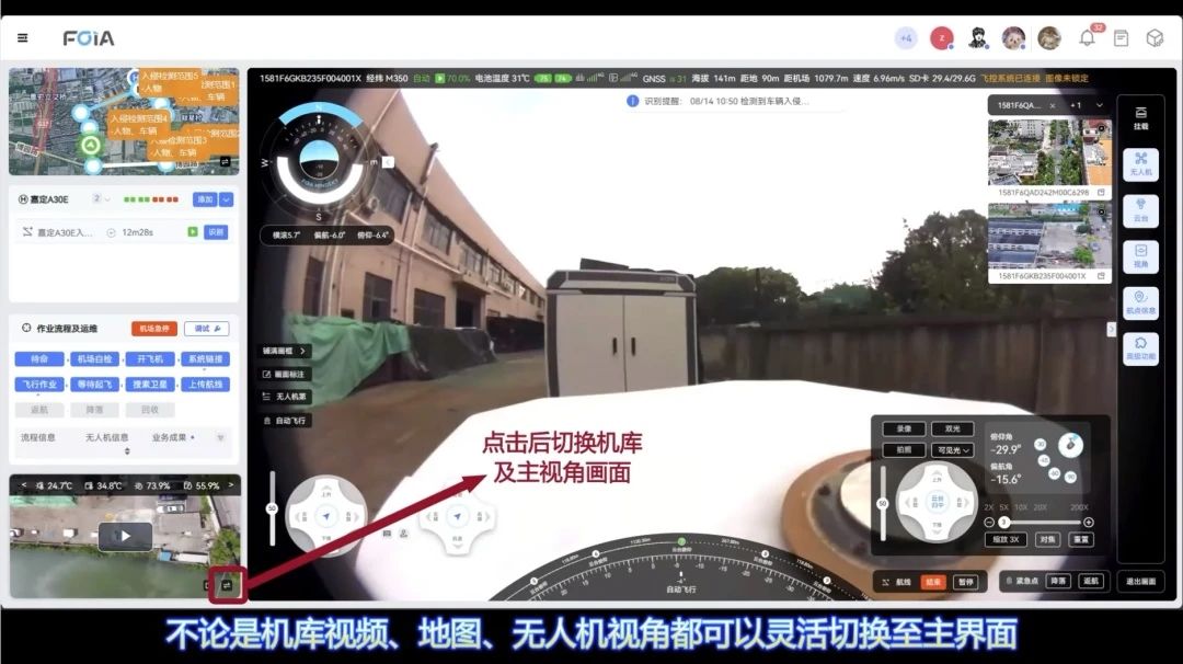 在飛行過程中,可以在平臺上切換機庫或作業視角,查看不同航線的巡查情況,全面掌握多任務進展情況。