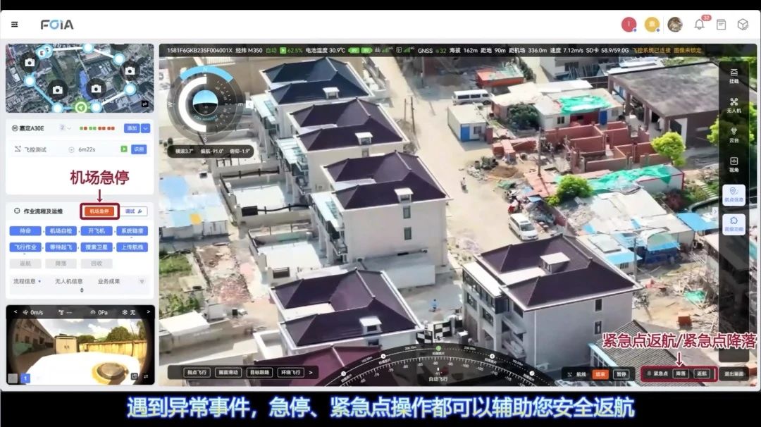 或者使用緊急點返航/緊急點降落功能,確保無人機安全返航,進一步增強無人機飛行的安全性,降低突發事件造成的損失。