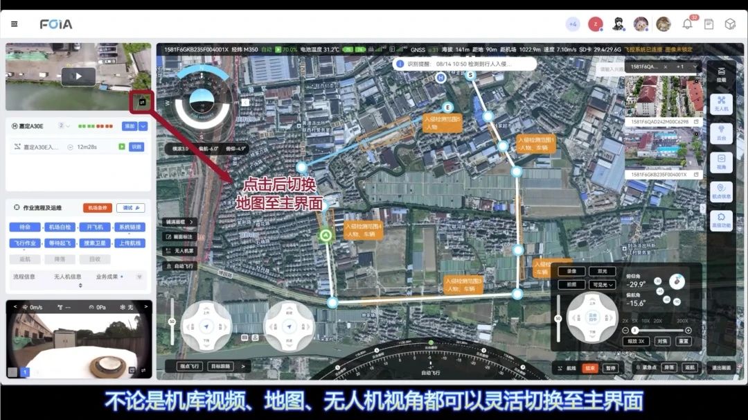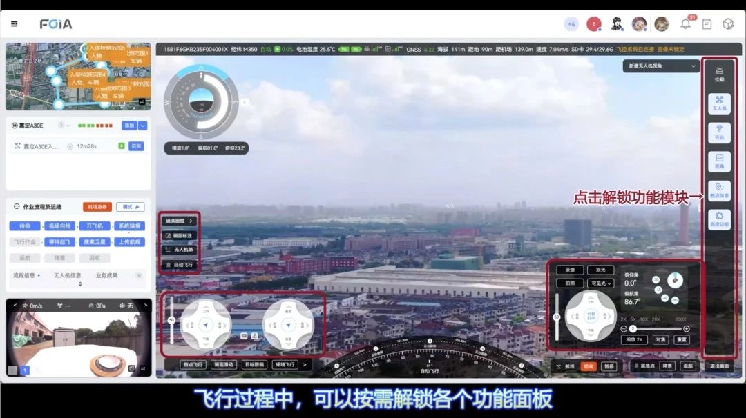 解決傳統的無人機飛行控制界面操作復雜、信息展示不全面、靈活性不夠等問題,復亞智能無人機管理平臺(適配復亞機場/大疆機場2)推出的全新升級飛行作業界面,集成豐富的飛行信息,友好的操控體驗,靈活的功能模塊,幫助操作人員快速直觀獲取信息,安全掌控高效執行。